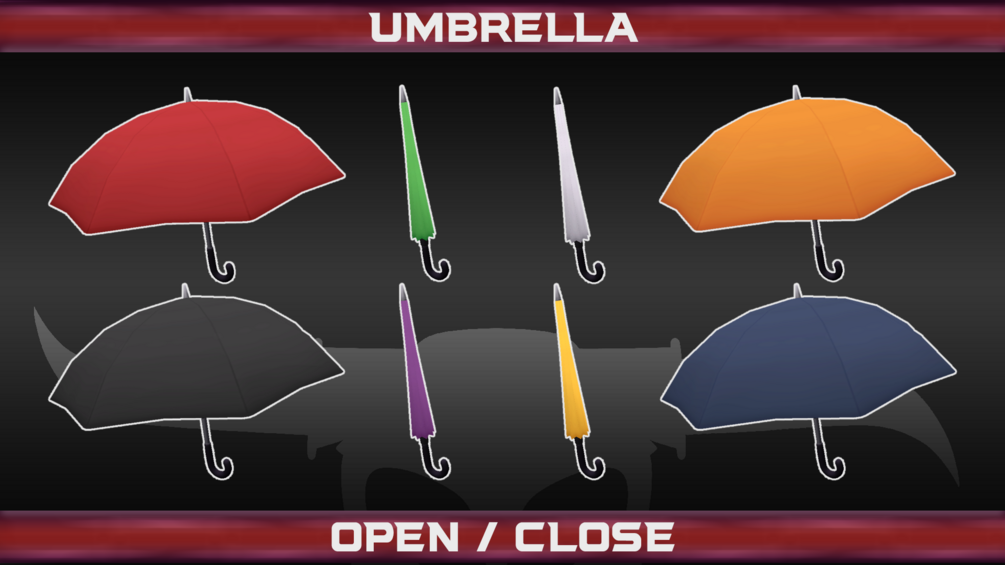 With the Umbrella, you get: - 1 Blockbuster Umbrella with animateable Open/Close Shape Key - 8 Base Colour Textures, with the canopy (cloth part) made to be as easy-as-possible to edit / add designs onto!